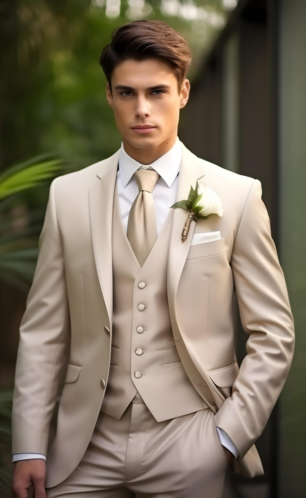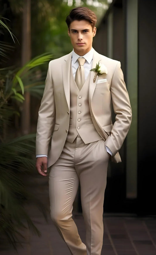 Chic Champagne Men's Three-Piece Suit - Sophisticated Business and Formal Attire