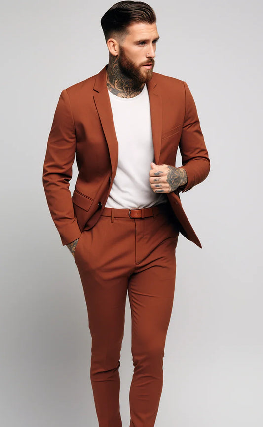 FLAT 12% OFFBURNT ORANGE 2 PIECE SLIM FIT SUIT