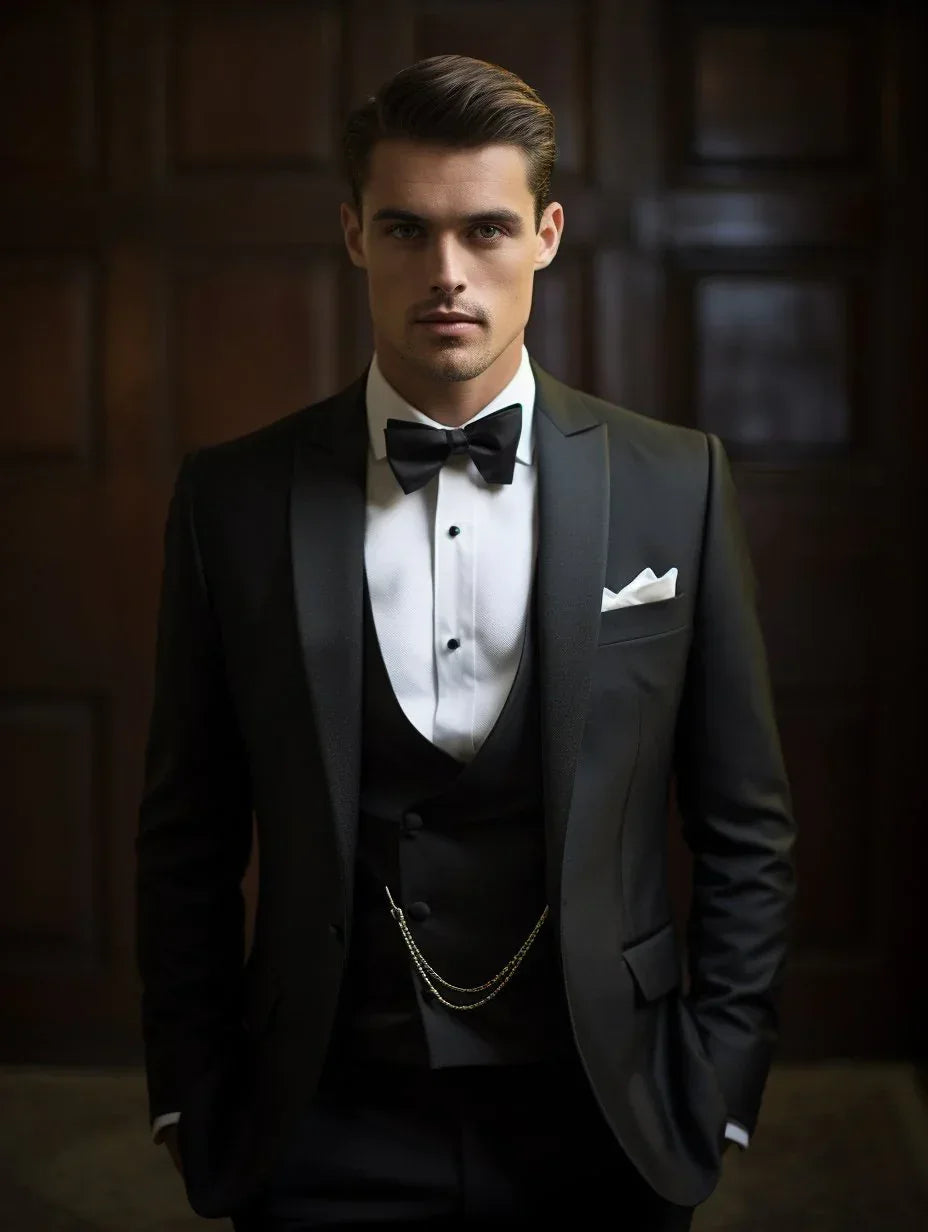 Men's Classic Black Shawl Lapel 3-Piece Tuxedo - Sleek Wedding and Event Attire - Timeless Formal Suit