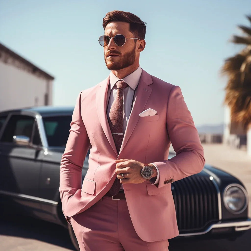 Men's Dusty Rose Notch Lapel 3-Piece Suit - Contemporary Business Attire - Classy Formal Wear